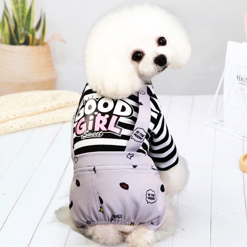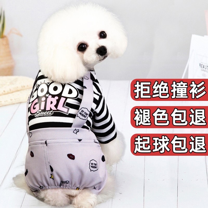 茨格曼 宠物狗狗衣服春秋猫咪衣服轻薄款泰迪比熊小型犬幼犬小狗防掉毛 灰色背带 四脚衣【微弹】 M号【建议4-6斤】
