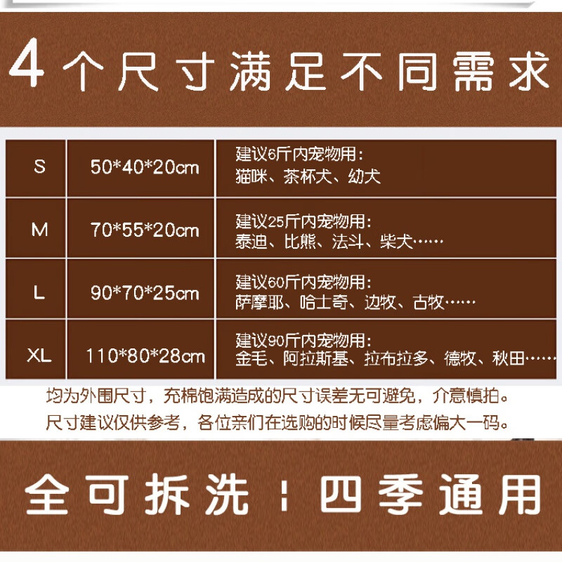 狗窝猫窝宠物窝舒适透气四季通用狗垫子宠物垫泰迪狗拉布拉多大型犬小型犬中型犬 灰色 S:50*40【6斤内】
