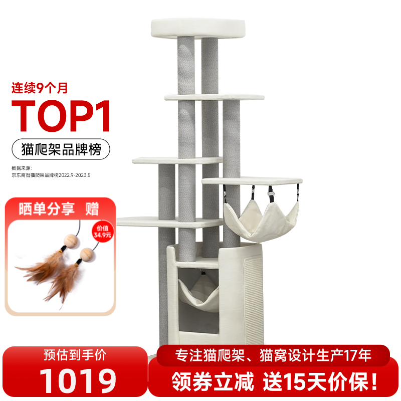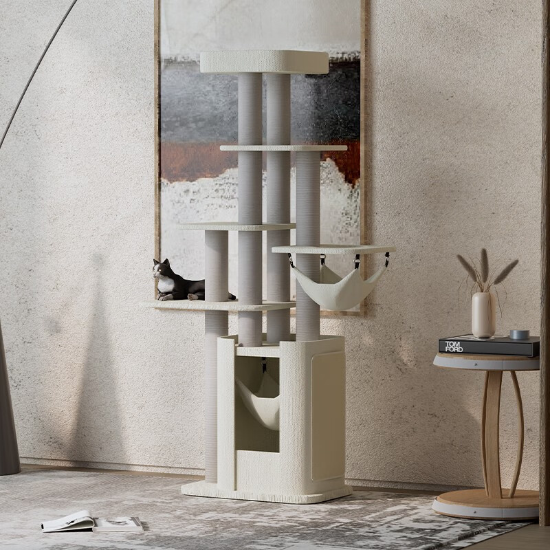 兽牌猫爬架大型猫架猫爬架带窝猫窝一体四季通用剑麻猫架子布偶猫缅因猫爬架超大猫树四季通用多猫家庭适用 山岩白·布艺【高度更高】