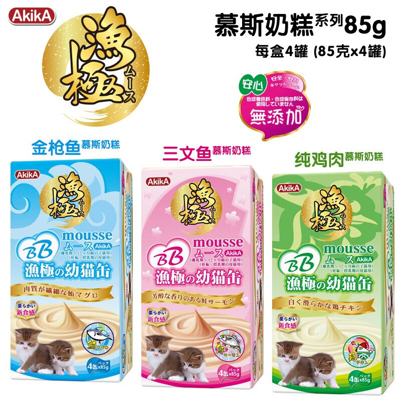 渔极猫罐头 泰国进口 AM系列 慕斯奶糕 宠物猫 BB罐母猫幼猫罐头 AM32三文鱼16罐