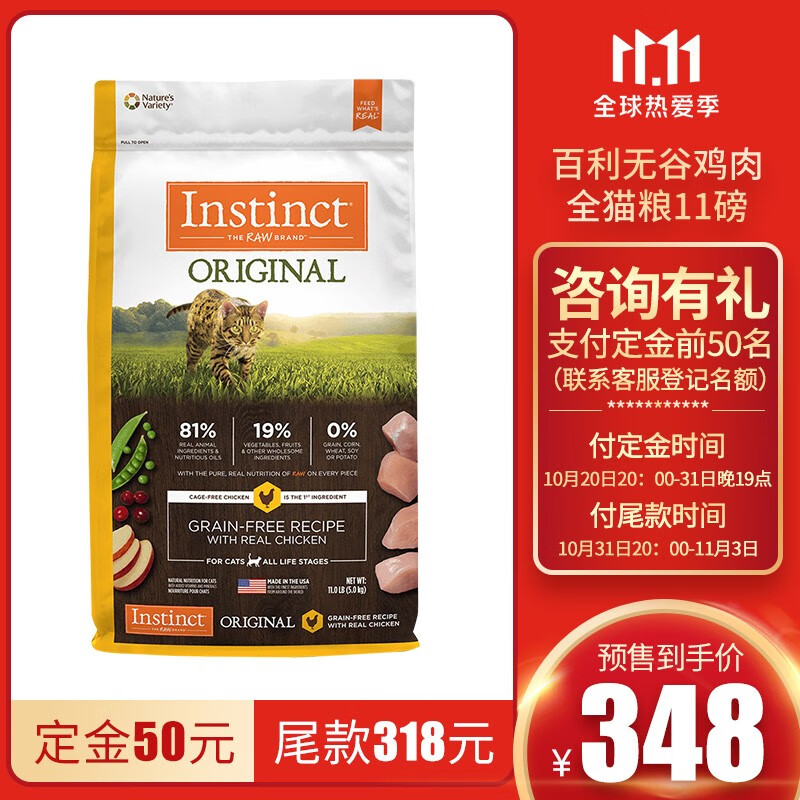 【防伪认证】Instinct生鲜本能(百利)猫粮天然无谷 美国进口 经典无谷 鸡肉配方全猫粮 经典无谷鸡肉全猫粮 11磅【预售有礼】