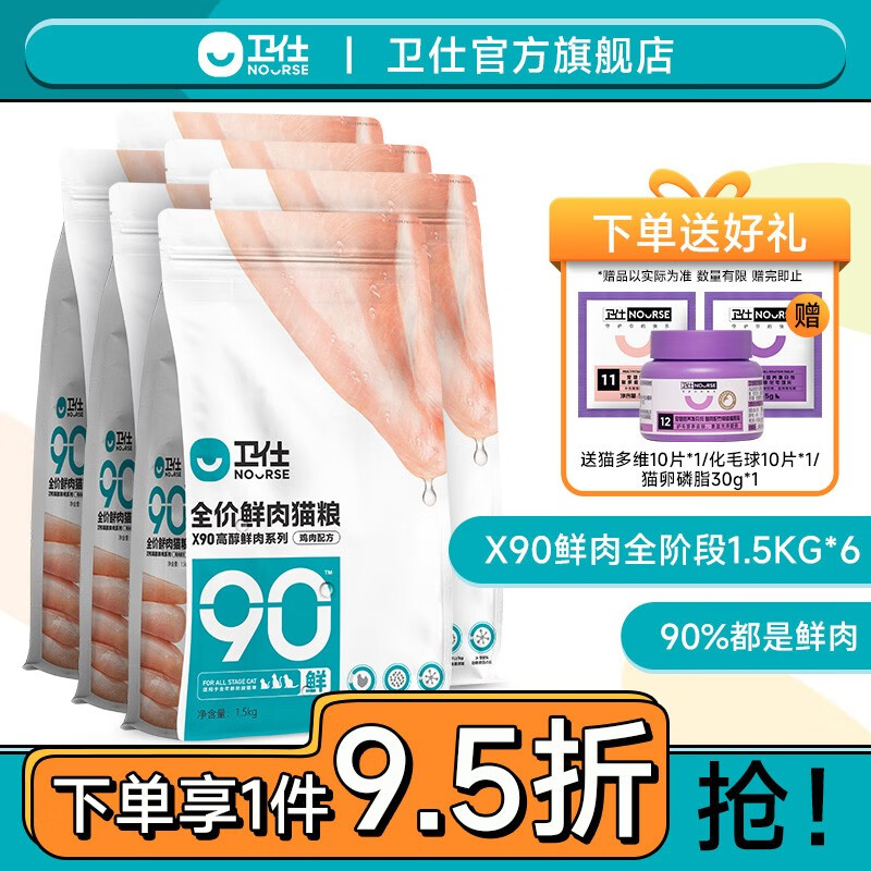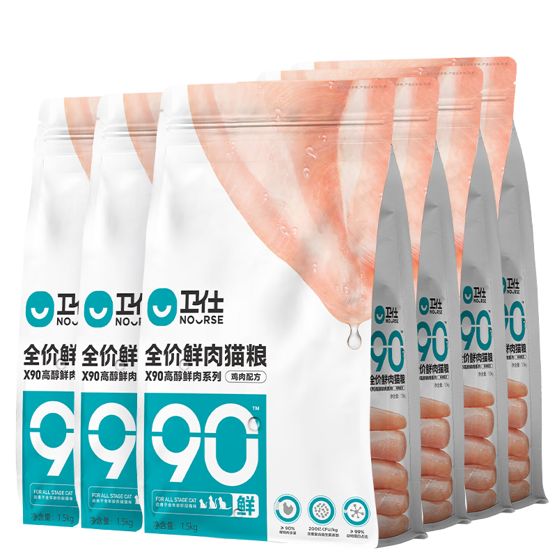 卫仕X90高醇鲜肉系列鲜肉幼猫粮-鸡肉配方 X90鲜肉全阶段1.5kg*6