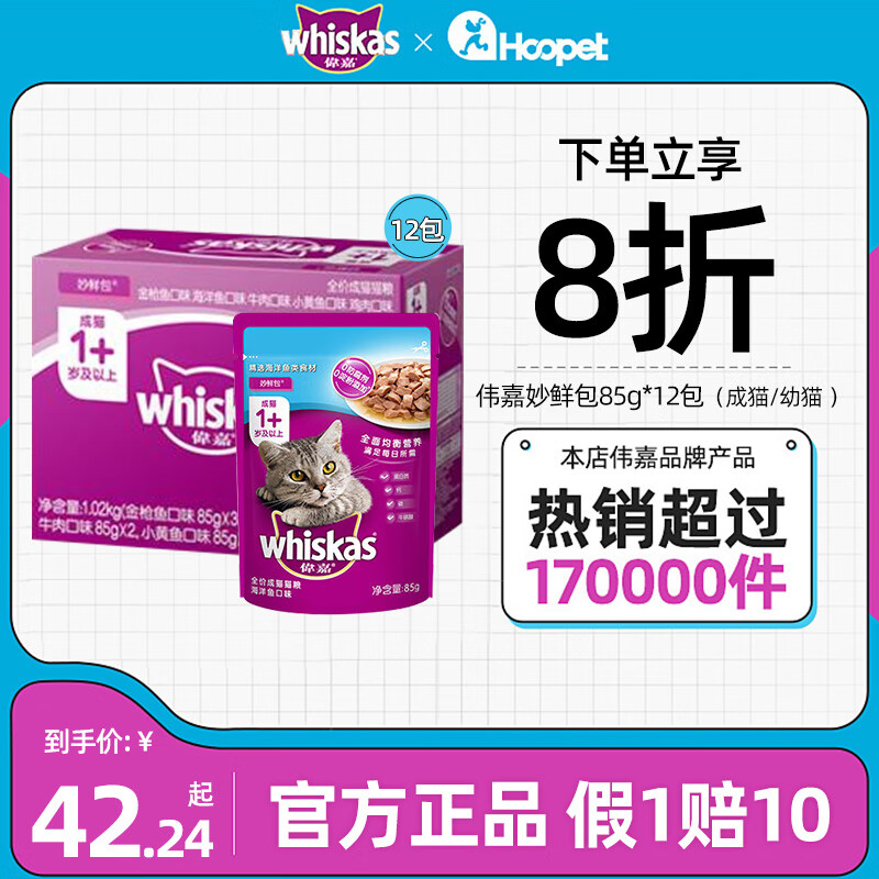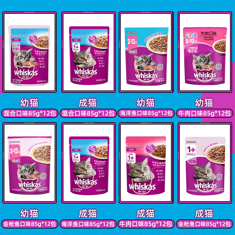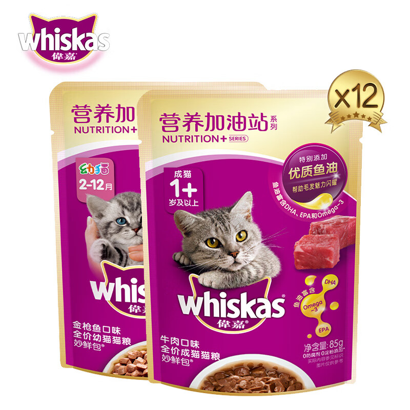 伟嘉妙鲜包12包幼猫成猫牛肉湿粮包肉粒猫咪罐头猫粮猫零食营养 幼猫【混合口味】85g*12包(3种 12包