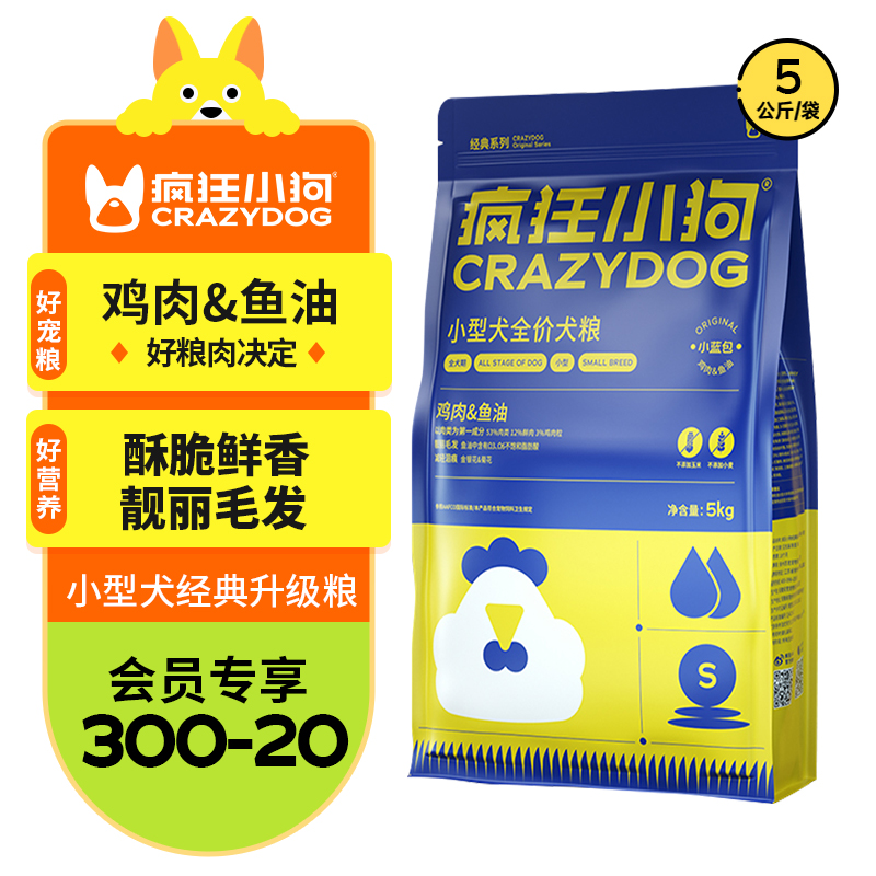 疯狂的小狗狗粮小型幼成犬通用型泰迪犬粮比熊美毛助长柯基宠物粮5kg 小型犬升级款5kg