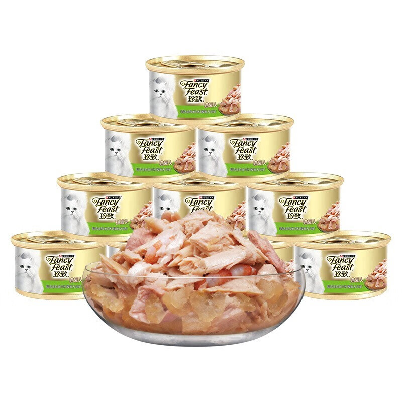 珍致猫罐头85g*24罐 泰国进口 宠物成猫幼猫 猫咪湿粮 白肉猫咪发腮增肥猫零食罐头 金枪鱼鲣鱼明虾85g 6罐