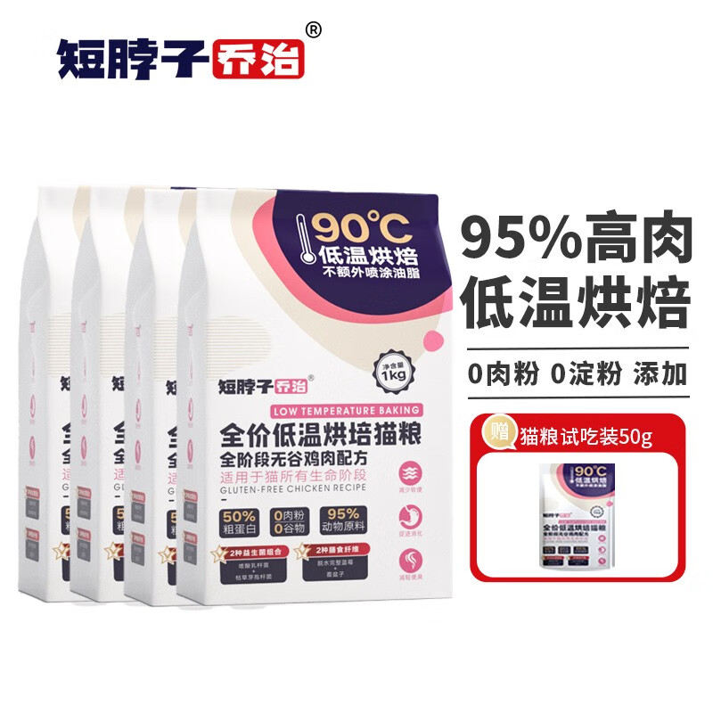 短脖子乔治全价鲜肉低温烘焙猫粮0淀粉0肉粉无谷高蛋白成猫幼猫全阶段易消化 8斤 50g试吃装
