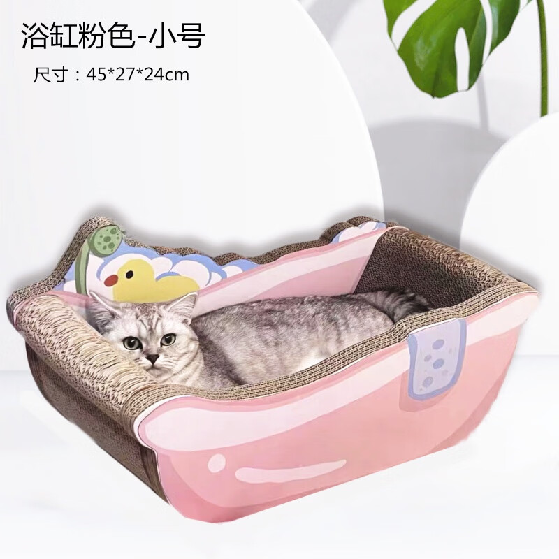 猫抓板隧道猫窝一体瓦楞纸耐抓不掉屑多功能玩具猫爪板盆猫咪用品 粉色浴缸-小号