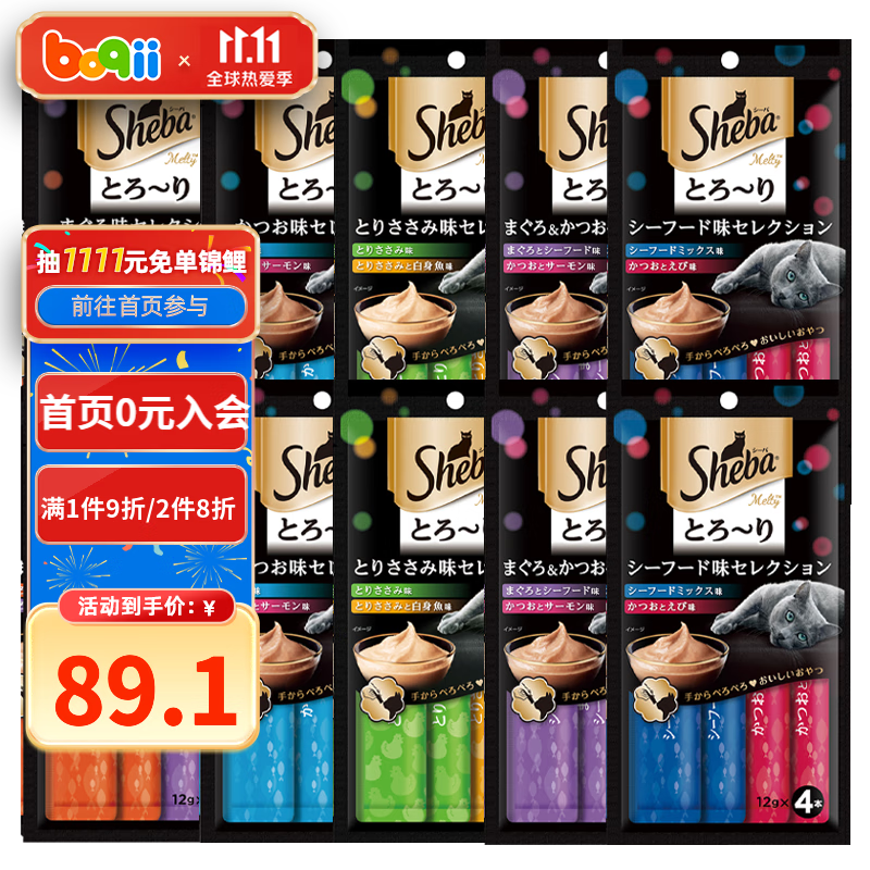 希宝(Sheba)猫条进口猫湿粮零食成猫老年猫流质猫零食营养妙鲜包罐头 混合口味48g*10包(口味随机)