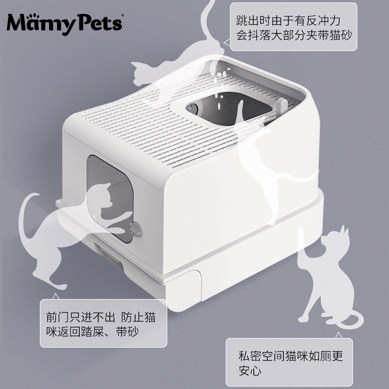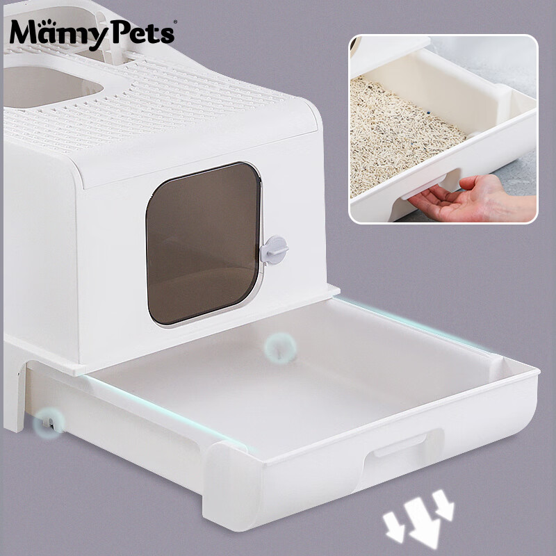 MamyPets 猫砂盆超大号防外溅成猫幼猫猫厕所全封闭式猫屎盆特大号抽屉式猫便盆猫咪用品(不含净味器款)
