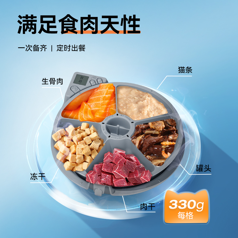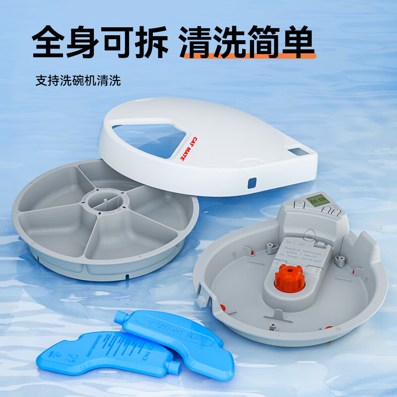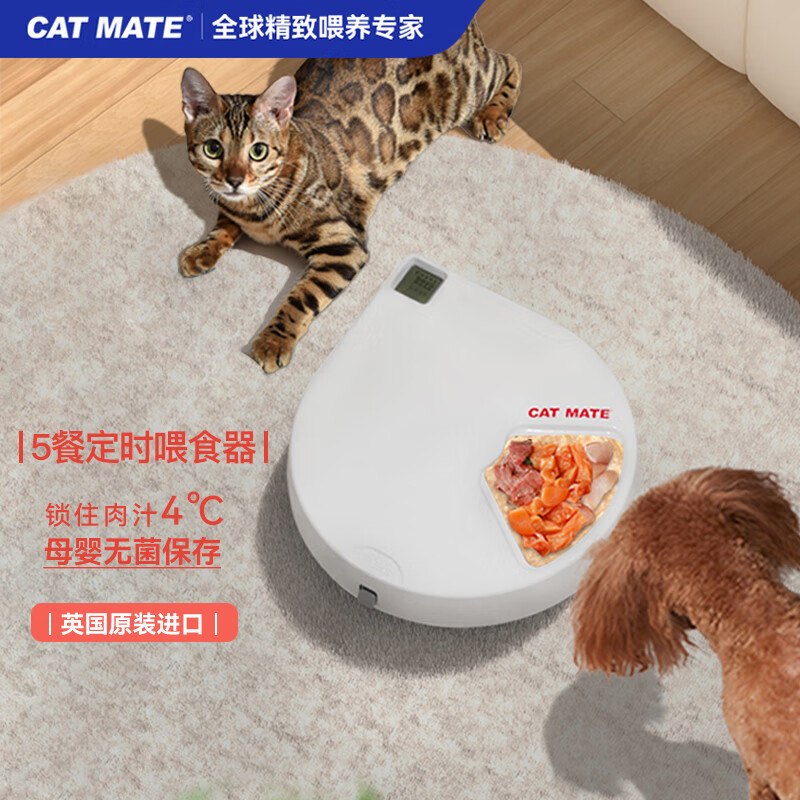 Catmate宠物自动喂食器365CN数字定时器版 猫咪狗狗干粮湿粮鲜粮罐头饭盒 蓝冰保鲜 适用5餐 英国进口