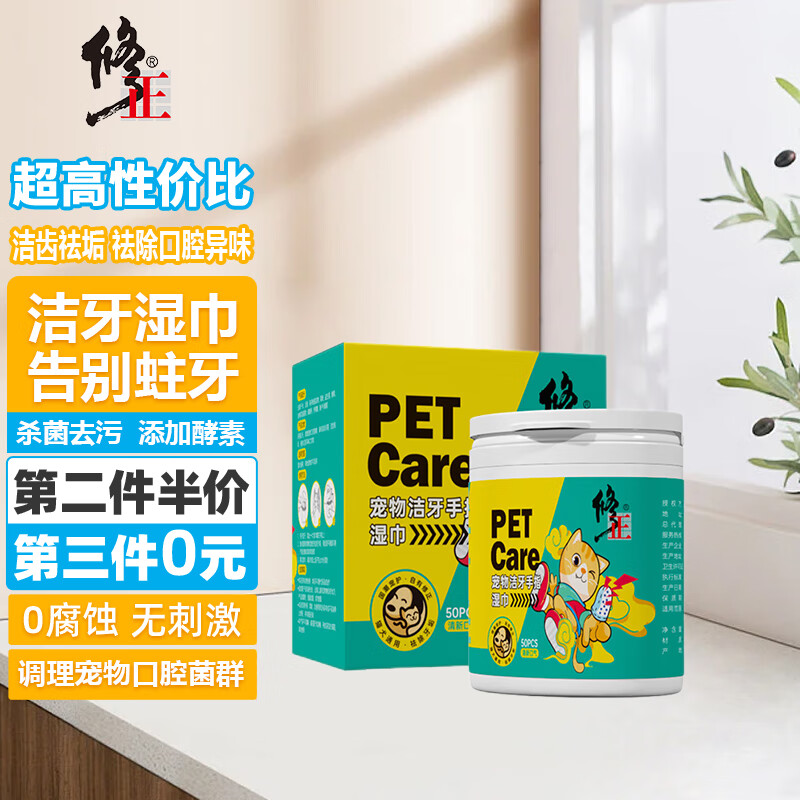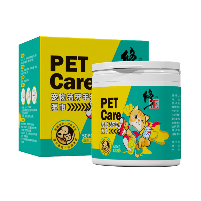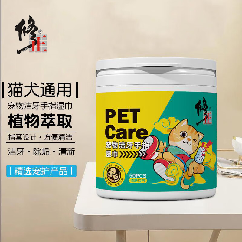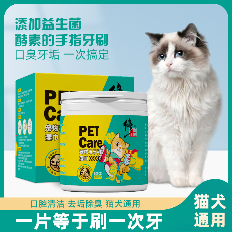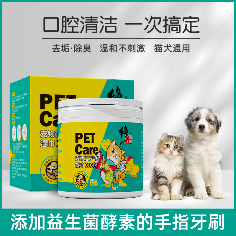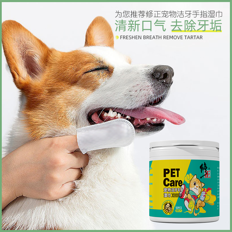 修正 狗狗猫咪洁牙刷牙手指套湿巾 宠物用品口腔牙齿清洁除垢去口臭清新口气成幼猫犬 50片/桶