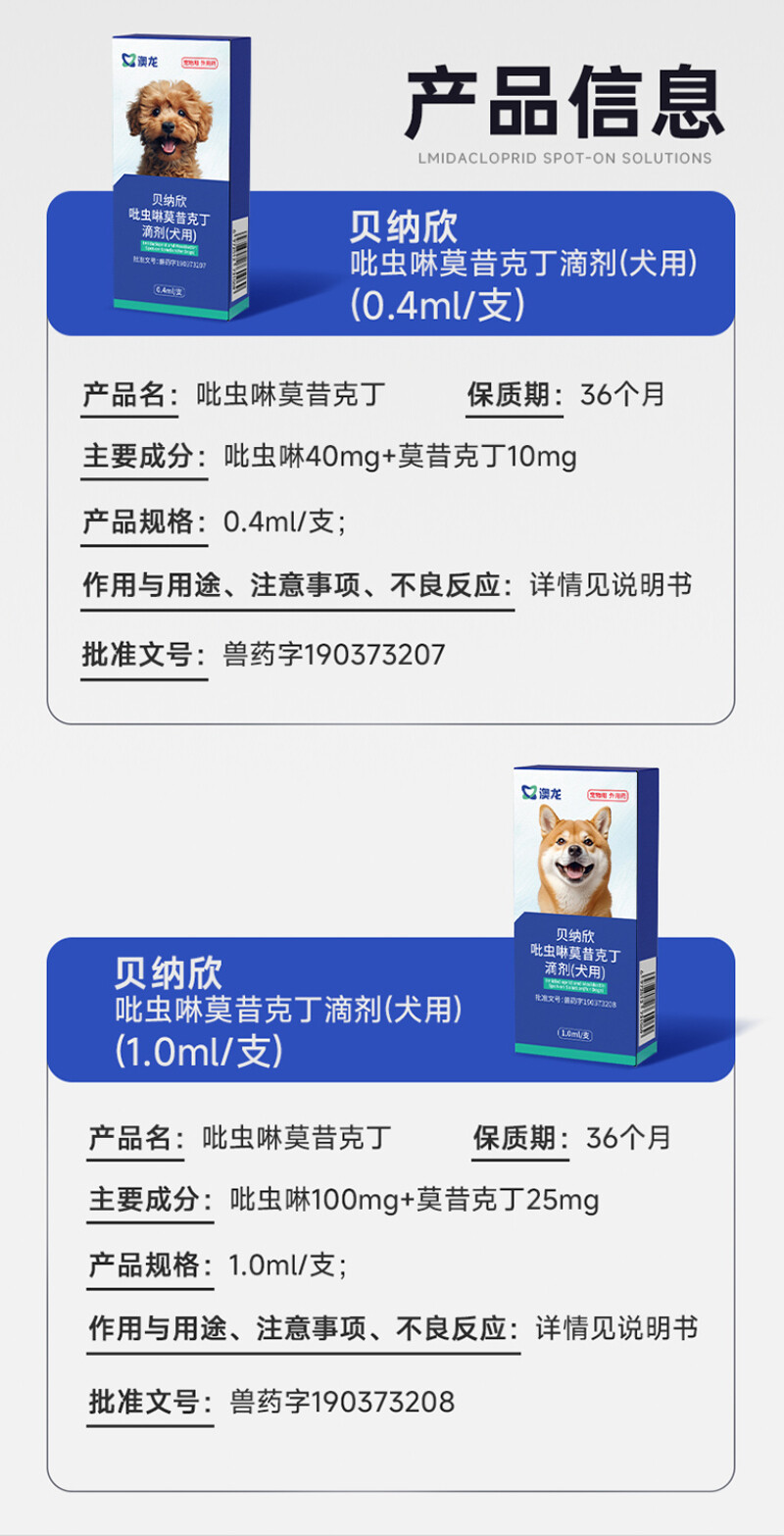 雷米高 澳龙贝纳欣 犬用驱虫药吡虫啉莫昔克丁滴剂3支装
