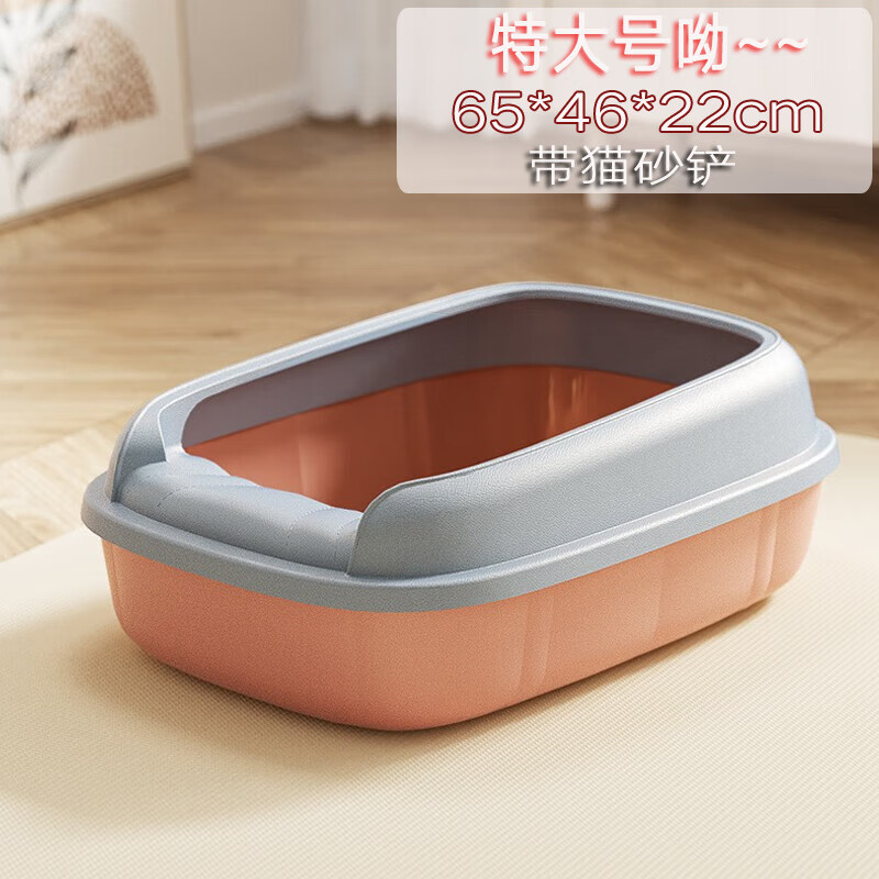 HZPET猫砂盆特大号半封闭式猫厕所大猫肥猫可用防外溅幼猫屎盆带猫沙铲 樱花粉(带猫砂铲)-65*46*22cm