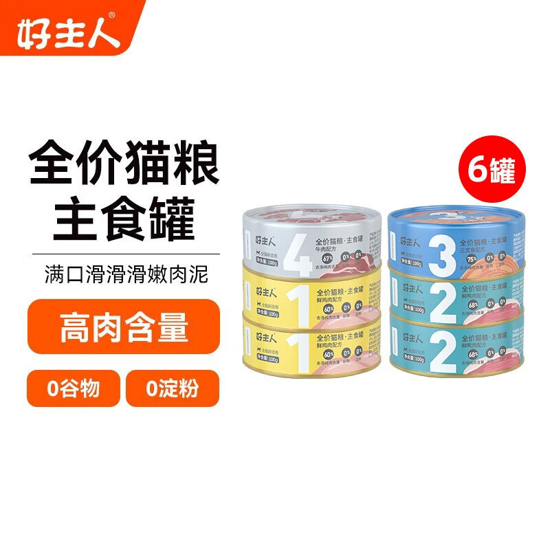 好主人 罐头 猫零食 成猫宠物猫粮猫咪零食 【主食罐】4口味混合装100g*6
