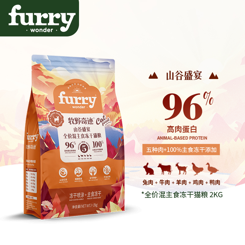 FURRY WONDER山谷盛宴 全价混主食冻干猫粮2kg*4兔肉牛肉羊肉鸡肉