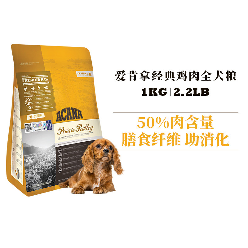 进口保税ACANA爱肯拿进口经典鸡肉幼犬成犬全犬粮1kg试吃小包装