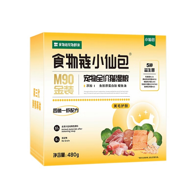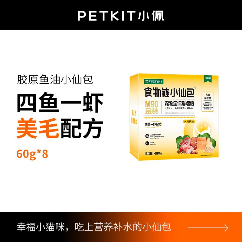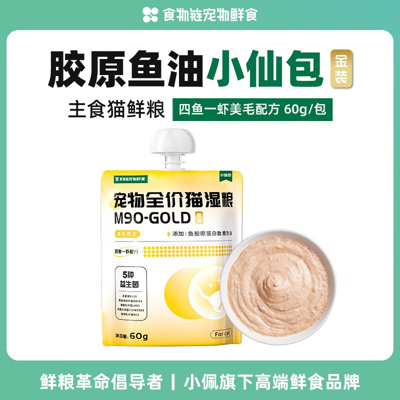 小佩【主食】小仙包金装 食物链猫零食湿粮肉软包全价猫粮鲜粮酱湿粮 四鱼一虾丨60g*8