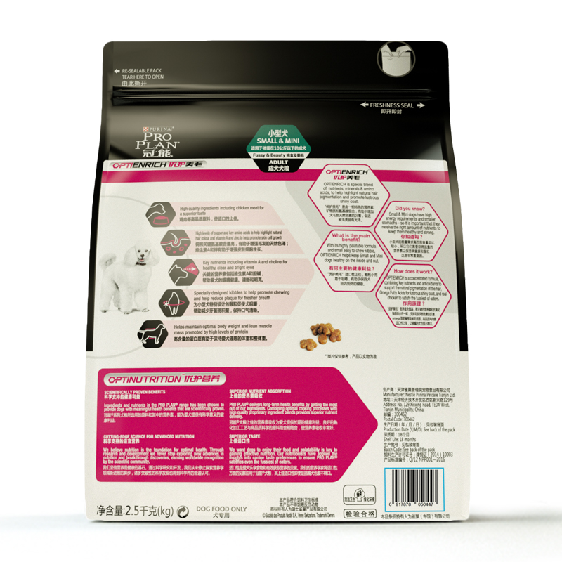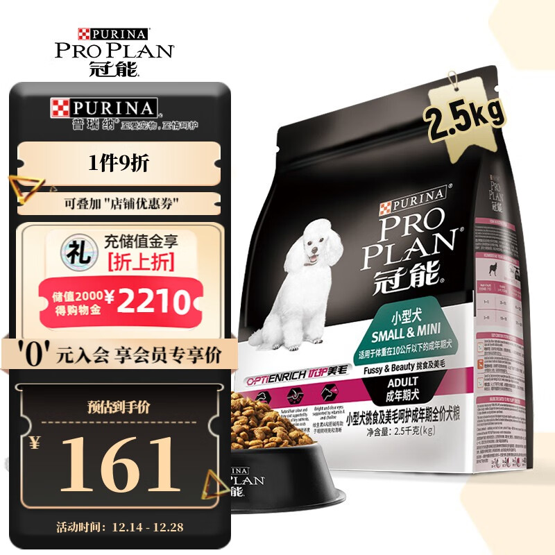 冠能(PRO PLAN)狗粮 小型犬成犬狗粮 柯基博美泰迪狗粮挑食美毛通用 2.5kg 成犬粮(2段大于12个月)
