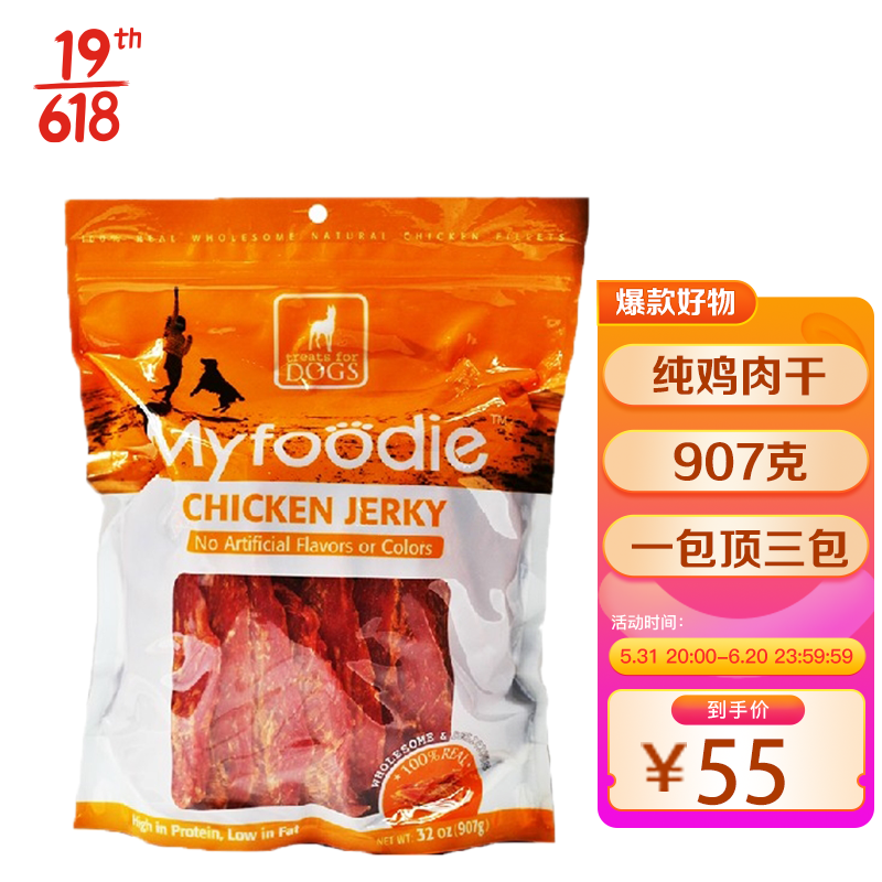 麦富迪鸡胸肉干狗狗零食泰迪金毛宠物狗狗幼犬磨牙训练狗零食 麦富迪907鸡肉干 4.5kg【五包】