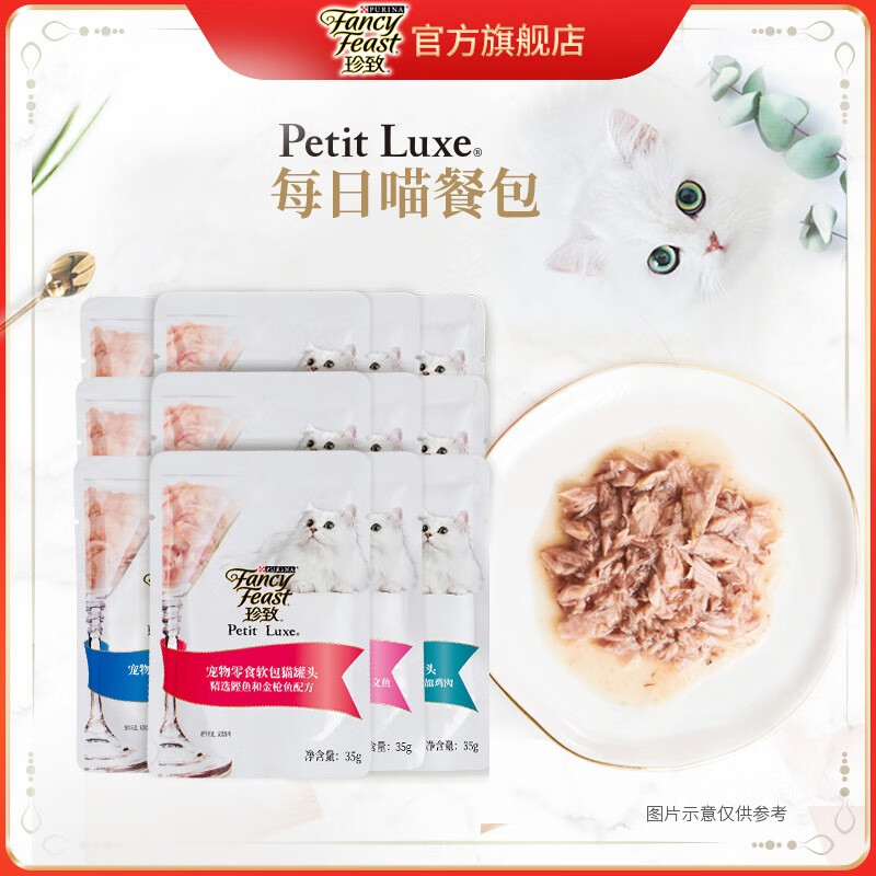 珍致 FancyFeast 每日餐包 精选鲣鱼配方整盒装 猫咪软罐头浓郁高汤猫零食 35g*12 混合装