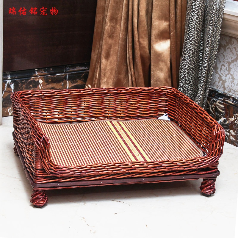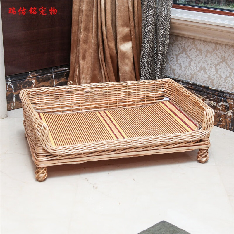 飞嘟乐 狗窝冬天保暖垫藤编狗房夏季四季通用藤编狗窝可拆洗宠物床猫窝金毛泰迪大中小犬四季可用 红棕擦色窝 垫子 凉席 三号(体长60cm体25斤以内