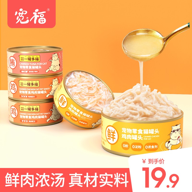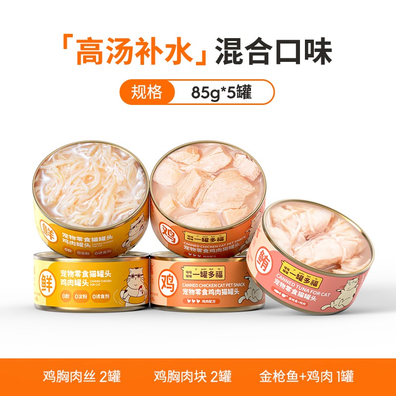 宽福宠物猫罐头猫粮主食罐猫湿粮白肉猫咪罐头猫粮零食成猫幼猫罐头 限时特惠85g*5罐【鸡胸肉丝】
