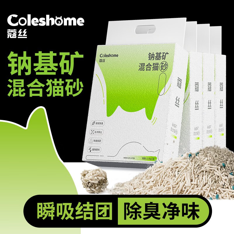 蔻丝(ColesHome)蔻丝钠基矿混合猫砂膨润土矿砂豆腐砂除臭无尘猫咪用品10公斤 【纳基矿混合猫砂】8包【20kg】