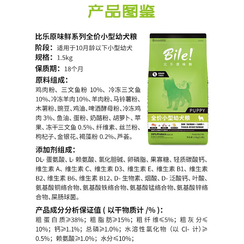 比乐狗干粮 小型中大型成犬粮 原肉冻干双拼狗粮 泰迪金毛萨摩无谷 通用营养配方 全价粮全期粮10kg 比乐原味小型犬幼犬全价粮1.5kg