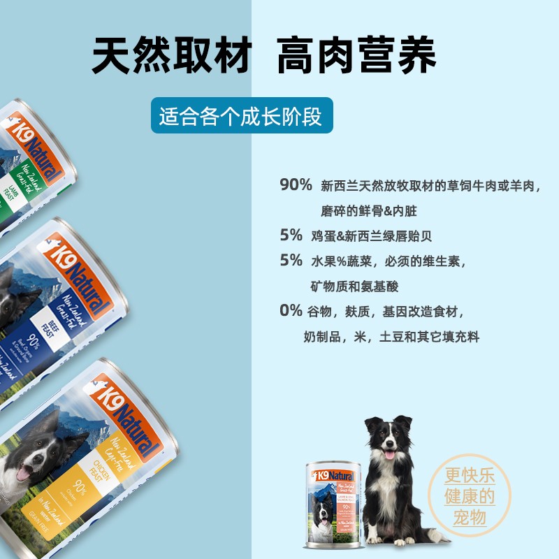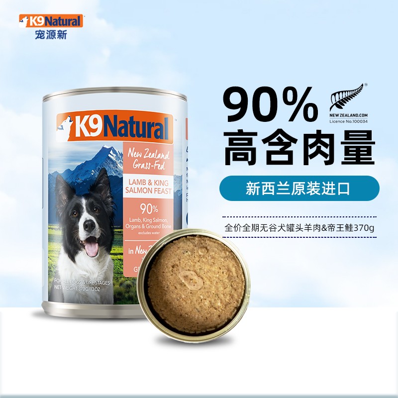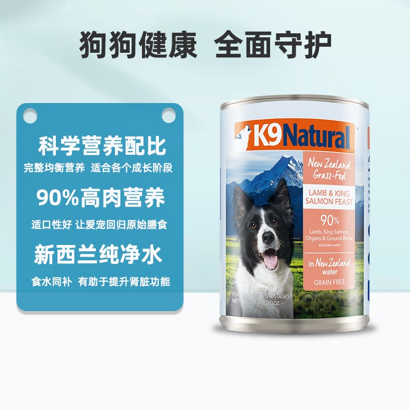 【顺丰发货】K9Natural 新西兰原装进口狗罐头 成犬幼犬通用主食罐头 羊肉帝王鲑370g