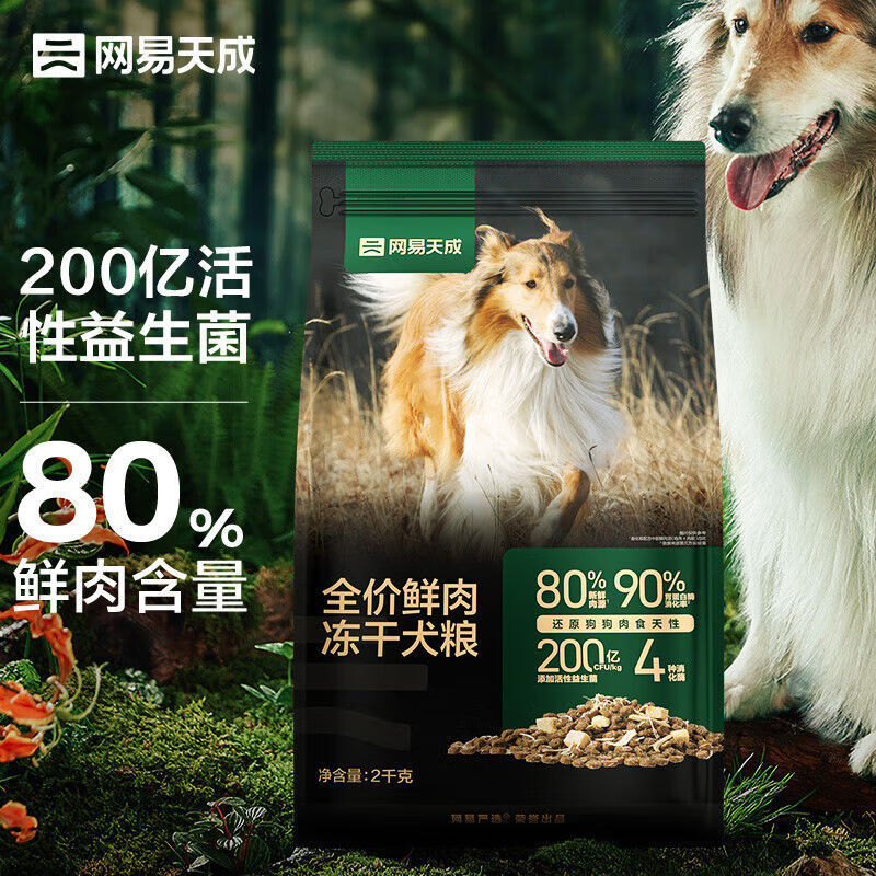 网易严选网易鲜肉肠胃狗粮幼犬冻干狗粮无谷大中小型成犬犬粮 网易天成新款鲜肉狗粮2kg 试吃