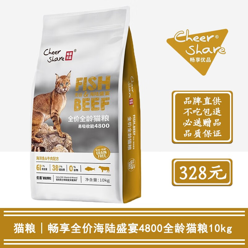 cheershare畅享猫粮 无谷鲜肉猫粮 低敏易消化幼猫成猫全猫龄全价猫粮 海陆盛宴猫粮10kg