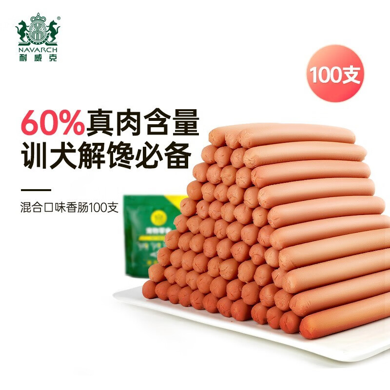 耐威克狗狗零食 宠物零食鸡肉牛肉鱼肉狗狗火腿肠幼犬 训练奖励泰迪比熊 混合口味100支