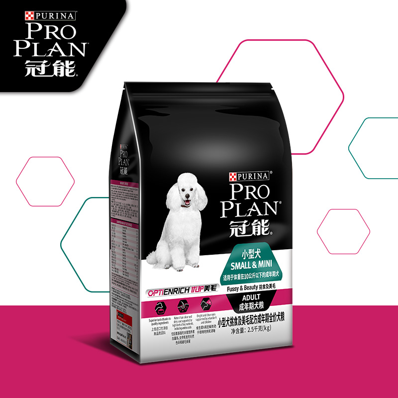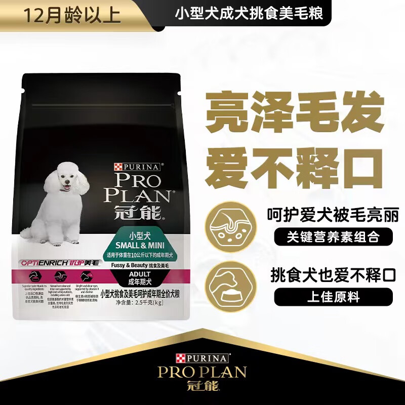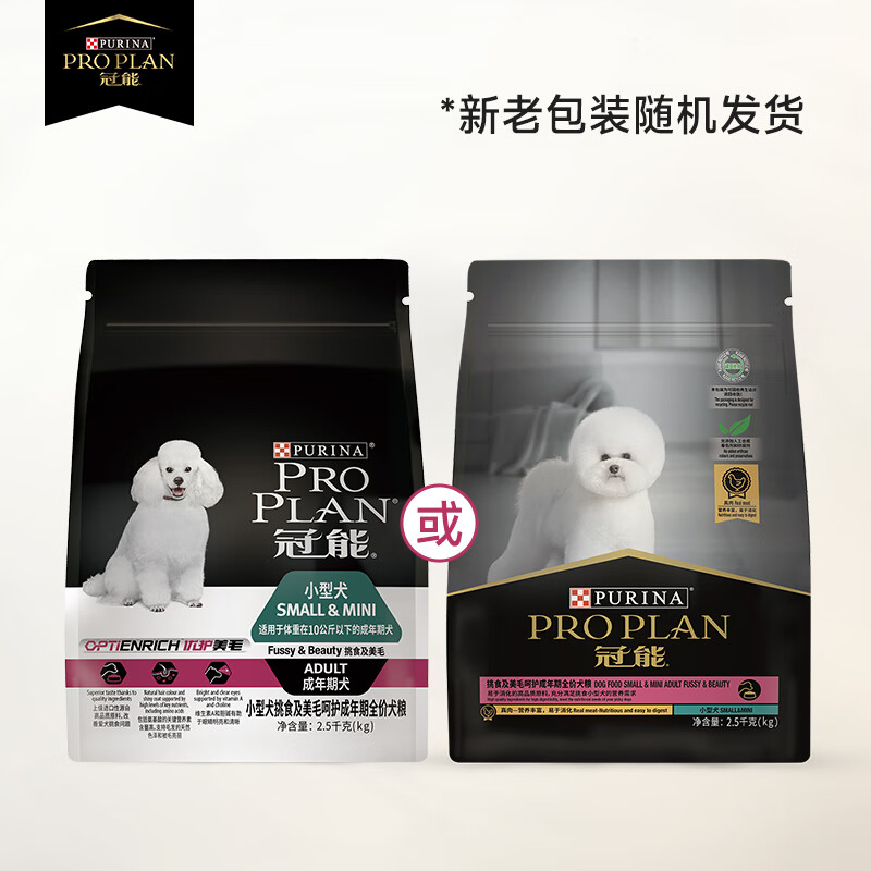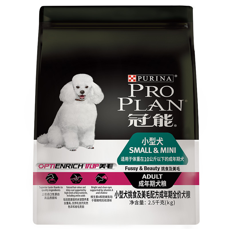 冠能(PRO PLAN)宠物成犬狗粮 小型犬美毛2.5kg 挑食美毛配方 直播品 新老包装随机发货