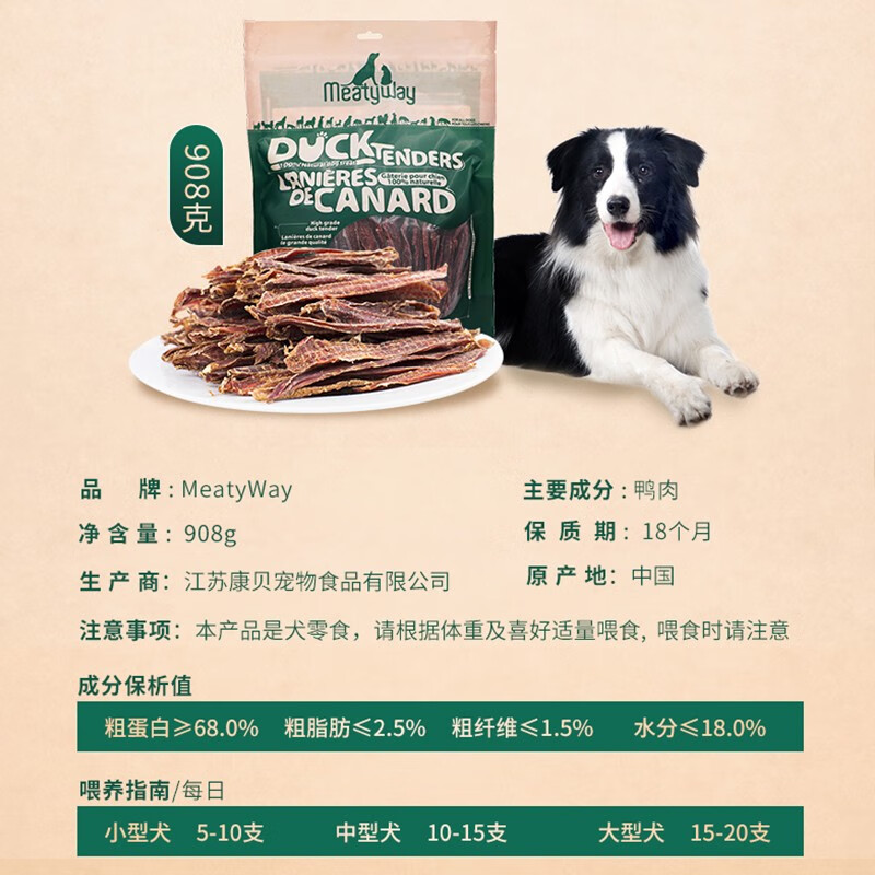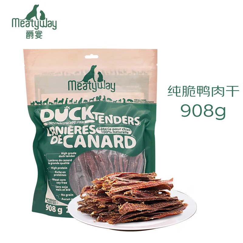 MEATY WAY爵宴狗狗零食纯脆鸭胸肉干鸡胸肉干苹果派 训犬大礼包鸡肉干 纯脆鸭胸肉干908g