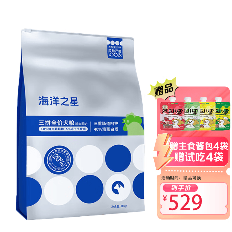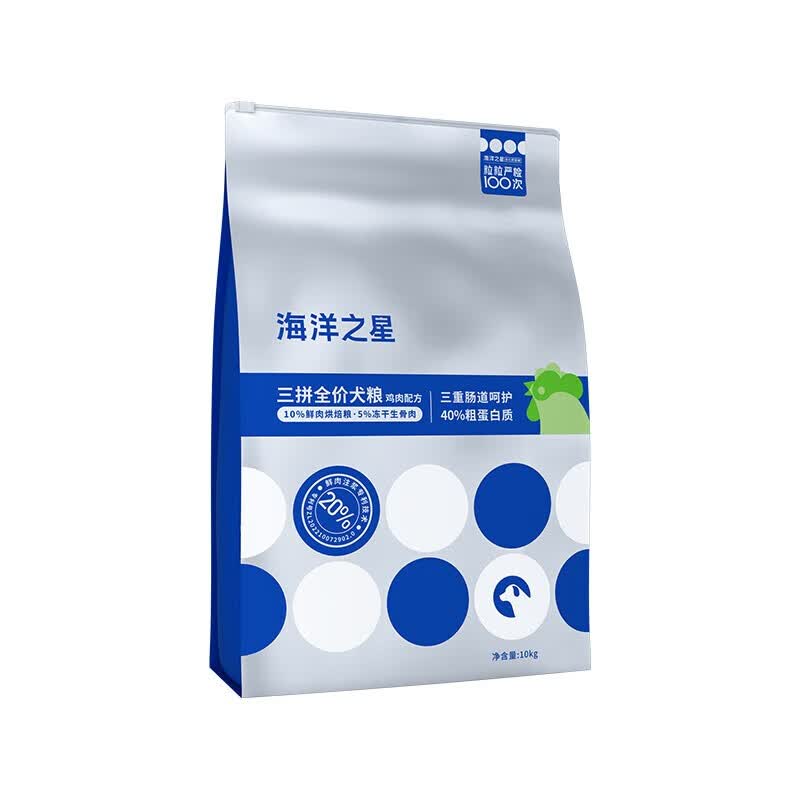 海洋之星Fish4dogs三文鱼中大型成犬粮狗粮天然无谷粮 泰迪金毛狗干粮 三拼冻干鸡肉犬粮10kg