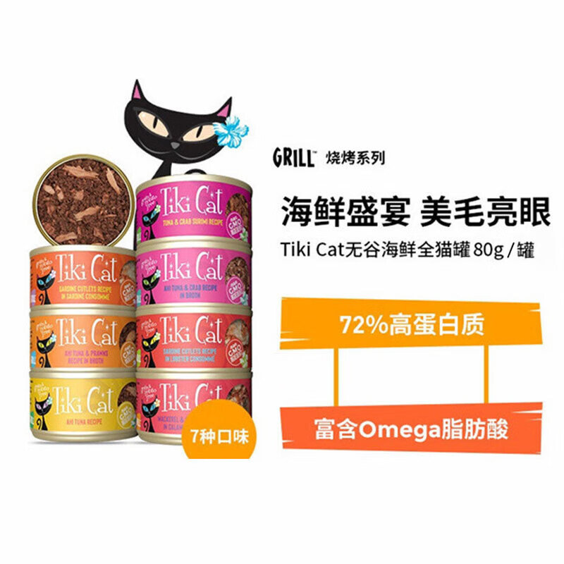 Tiki Cat主食猫罐156g肠胃调理宠物罐头进口全阶段鸡肉营养 【黄鳍金枪鱼 明虾】 80g