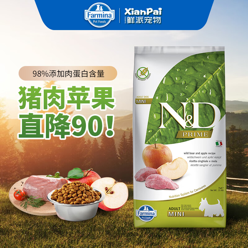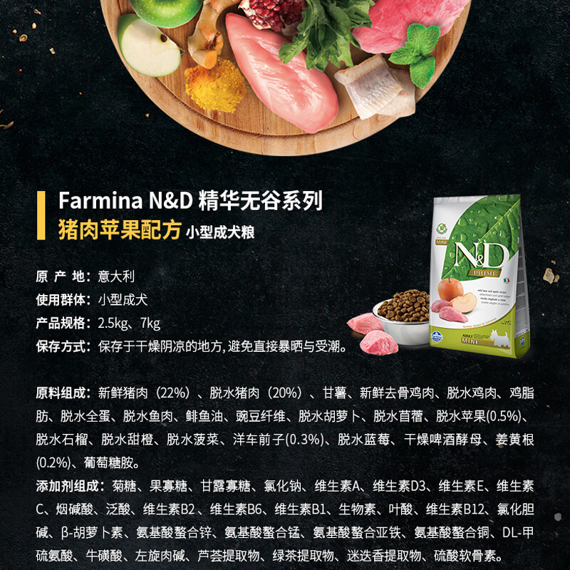 法米娜(Farmina)进口狗粮 小型犬成犬粮泰迪比熊无谷粮 猪肉苹果7kg