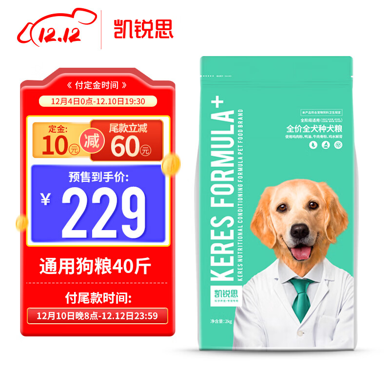 凯锐思泰迪萨摩耶金毛拉布拉多哈士奇狗粮自营幼犬成犬通用型粮 2kg*10袋(实发40斤)