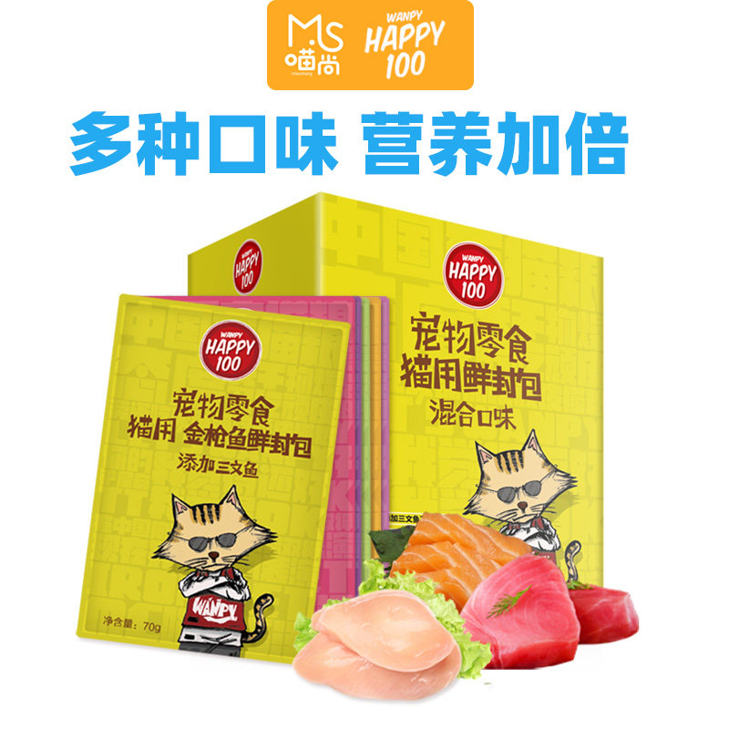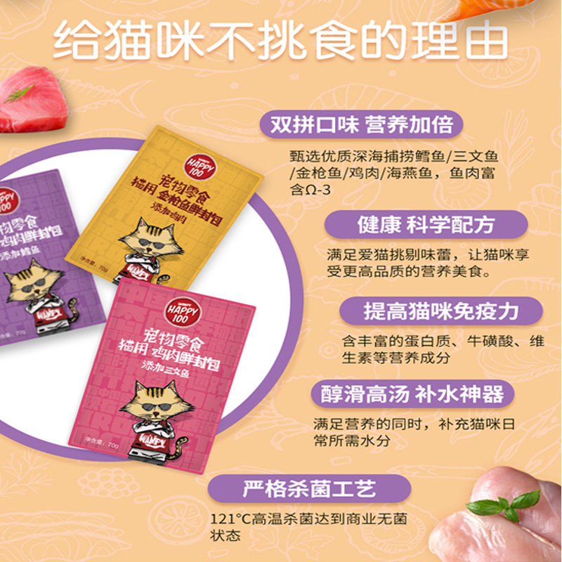 顽皮happy100鲜封包正品猫咪特色零食罐头金枪鱼条鸡肉湿粮70g