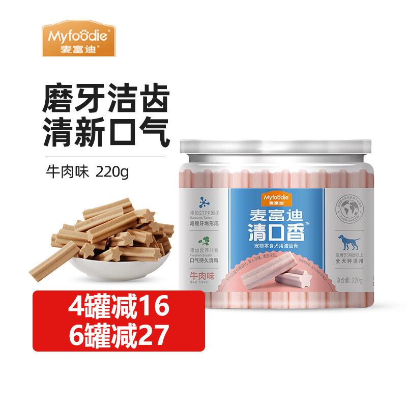 【4罐减16】麦富迪清口香220g磨牙棒狗咬胶洁齿骨贵宾泰迪幼犬成犬去除牙垢清洁口臭宠物狗零食 清口香牛肉味220g