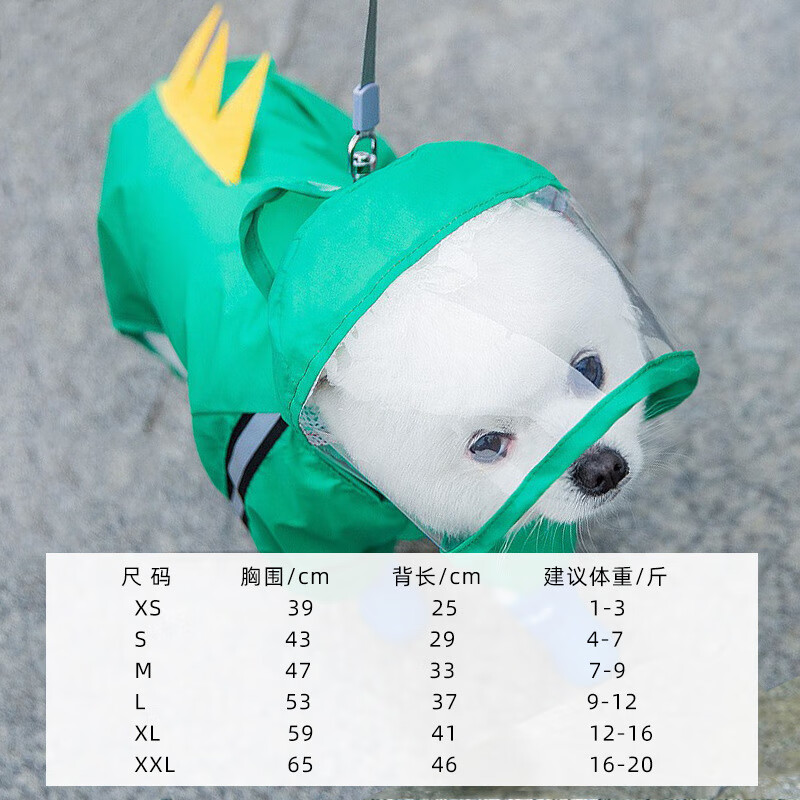 道顿世家(DOTON)宠物小狗狗雨衣四脚防水全包泰迪比熊小型犬中型大型犬护肚子雨披 立体恐龙绿色 XS