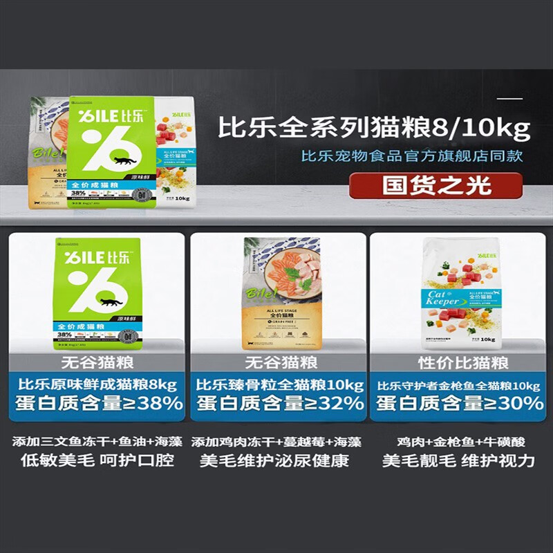 比乐原味粮(Bile!)原味猫粮8kg低敏无谷臻骨粒鸡肉冻干三文鱼发腮成幼猫粮10kg 原味鲜成猫粮8kg 1kg(加量版9kg 1lb