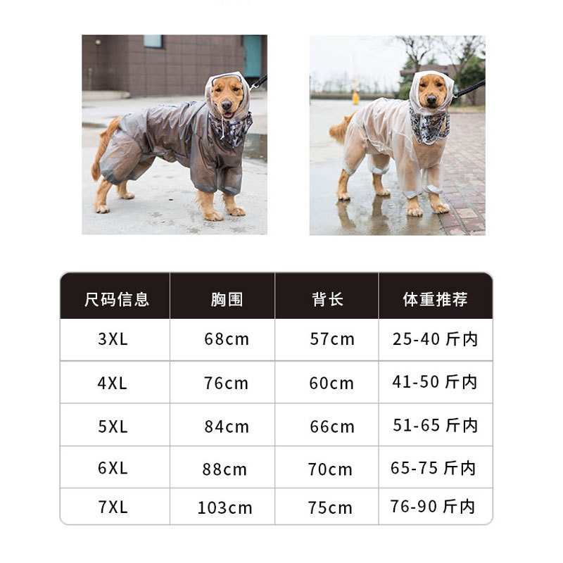 金毛雨衣狗狗四脚防水全包大狗衣服宠物柴犬萨摩耶大型犬拉布拉多