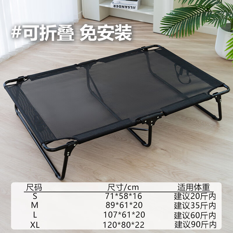 嬉皮狗(hipidog)狗窝四季通用狗狗行军床可拆洗狗床夏天猫床金毛大型犬夏季宠物床 折叠款黑色 S-小号(建议30斤内)