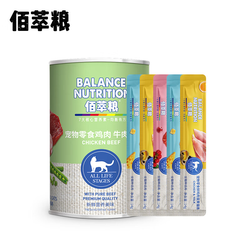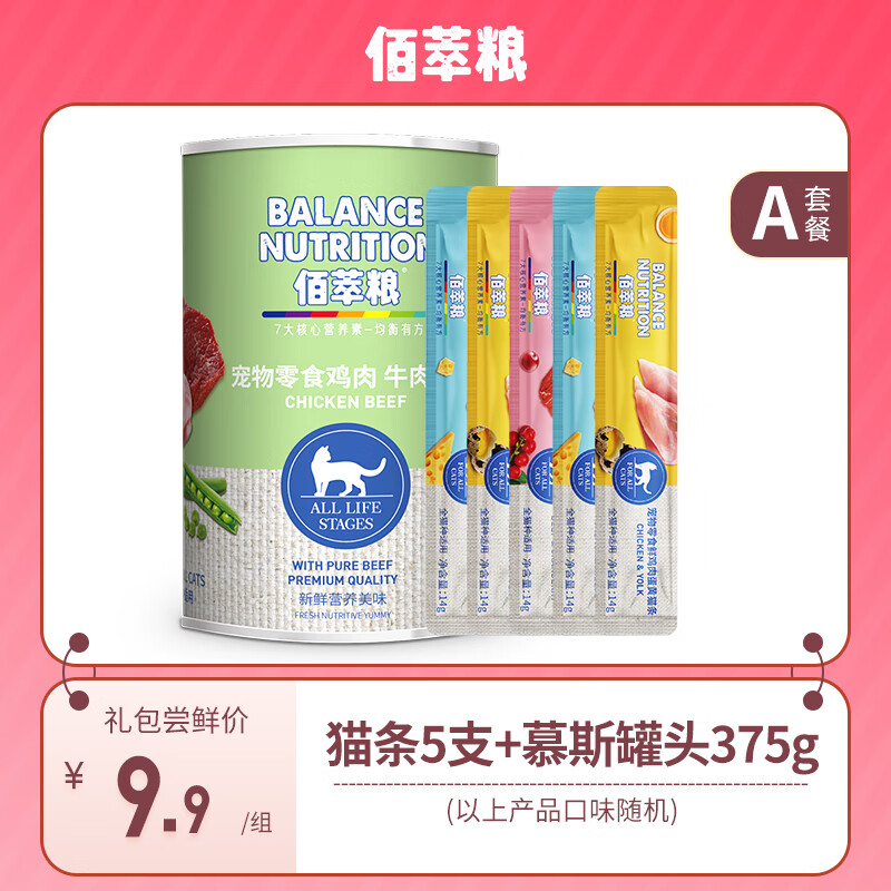 佰萃粮猫零食尝鲜礼包 湿粮猫条罐头成幼猫咪补水 (A)慕斯罐头375g 猫条5支