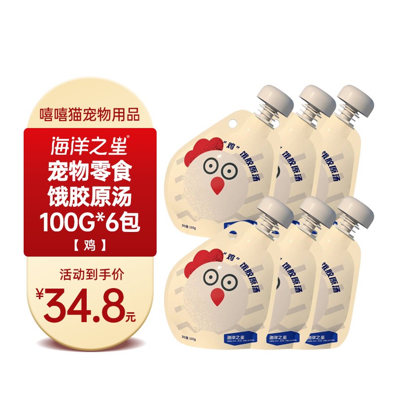海洋之星胶原汤包宠物猫咪狗狗零食浓汤包湿粮罐头宠物成幼犬猫即食零食包犬猫通用型 【鸡】饿胶原汤100g*6包