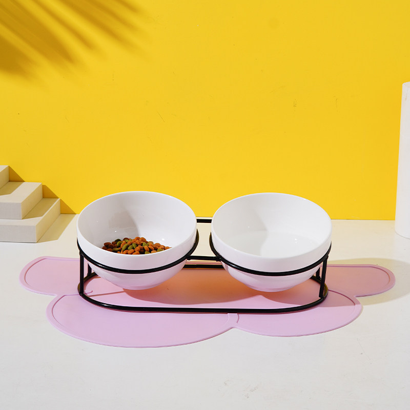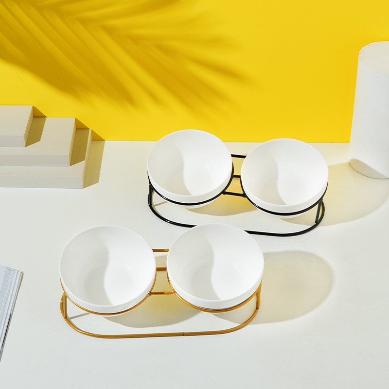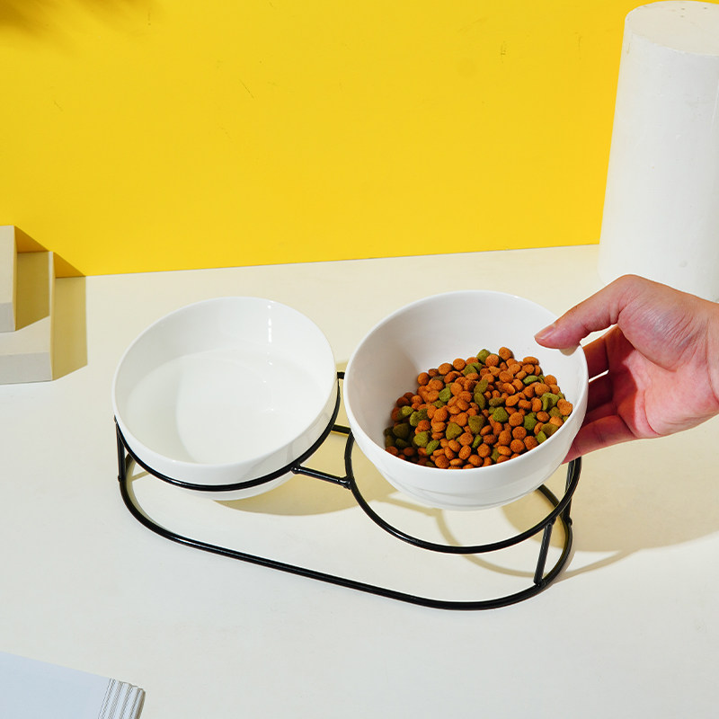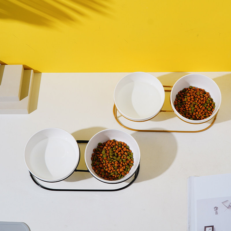 猫碗双碗陶瓷带架子猫咪饭碗防打翻猫食盆水碗小型犬狗碗宠物用品
