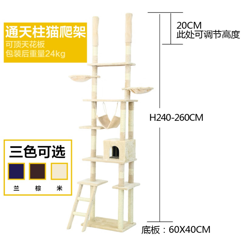 【升级新款】猫爬架大型豪华通天柱 顶天立地猫爬架通天柱剑麻猫跳台猫架子猫窝猫树一体大型猫咪爬架 米色(主图款)
