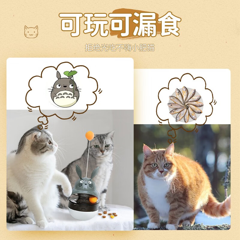 hoopet 猫玩具自嗨不倒翁解闷神器逗猫棒猫转盘小猫漏食球猫猫小球玩具自动逗猫宠物猫咪用品 龙猫不倒翁 升级款