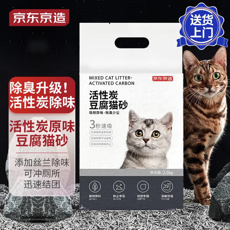 京东京造 活性炭双重除臭豆腐猫砂2.6kg 2mm结团紧实可冲厕所